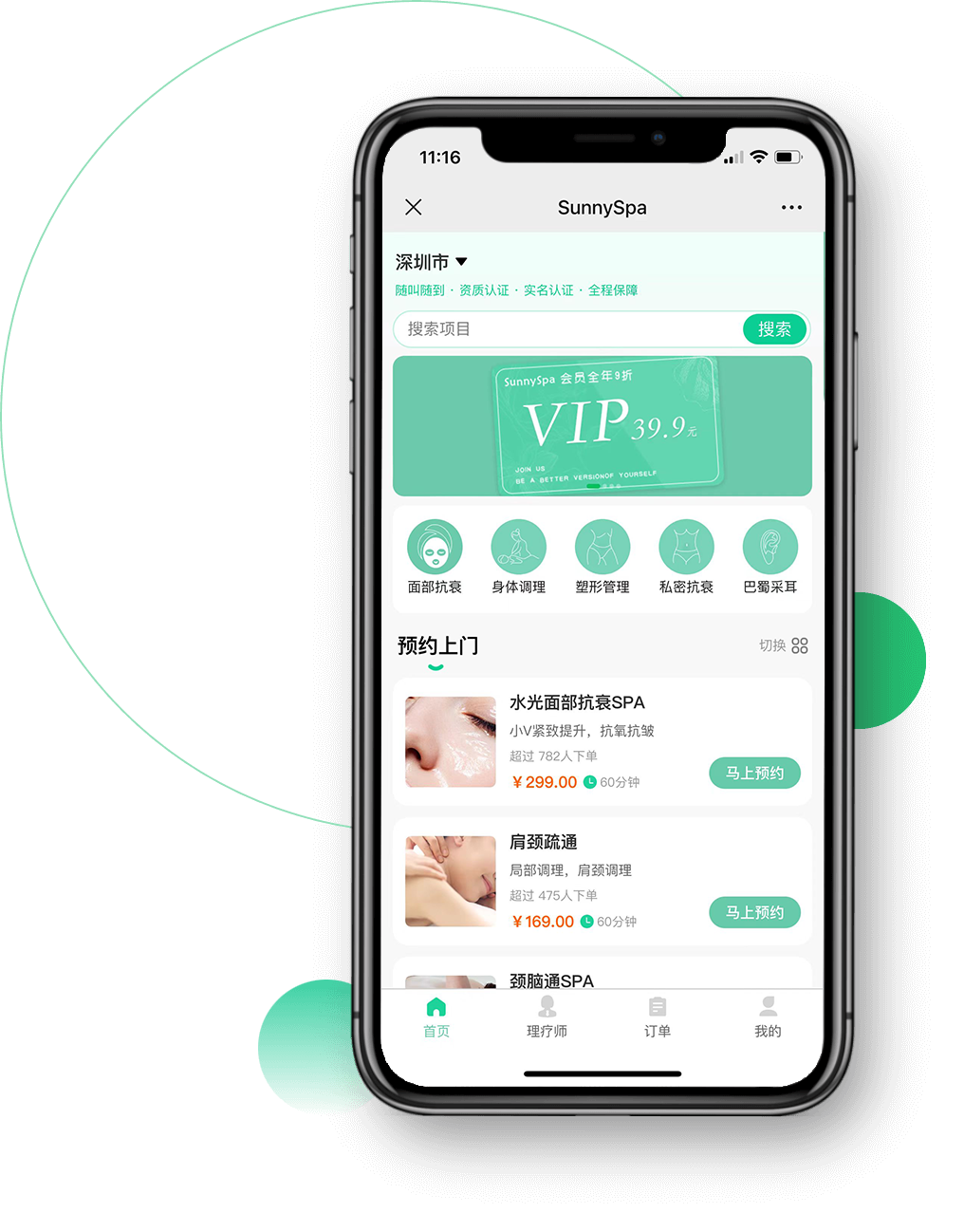 SunnySpa 平台秉承“科技改变健康生活”的战略愿景,践行“构建新型灵活就业+创业平台”的经营理念,肩负“关注美丽健康、实现美好生活”的社会使命,构建SunnySpa互联网移动美容养生直约平台,打造“ToB+ToC”的商业闭环。